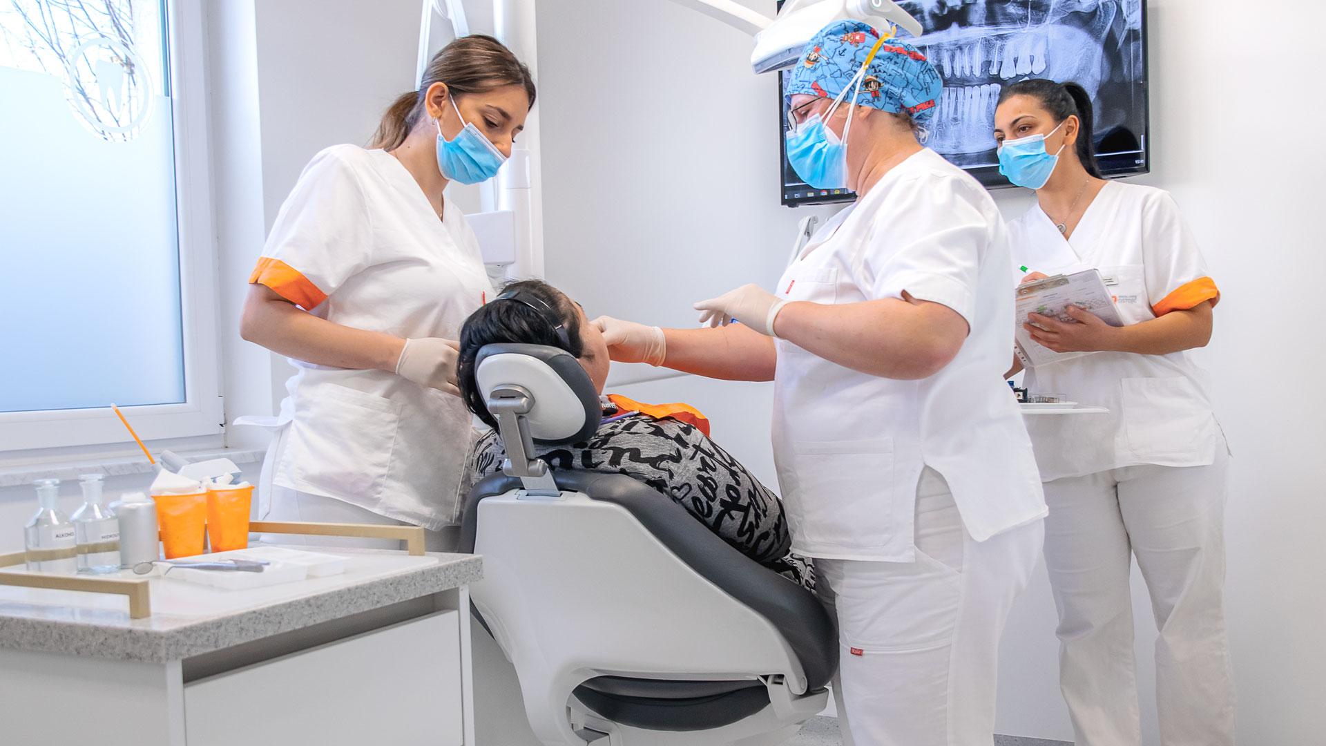 In the field of implantology, the center performs both standard and complex procedures, including subperiosteal implants and All on 4, All on 5, and All on 6 protocols for full fixed rehabilitation of edentulous jaws. Surgical treatments can be carried out under conscious sedation, significantly reducing patient stress and discomfort.