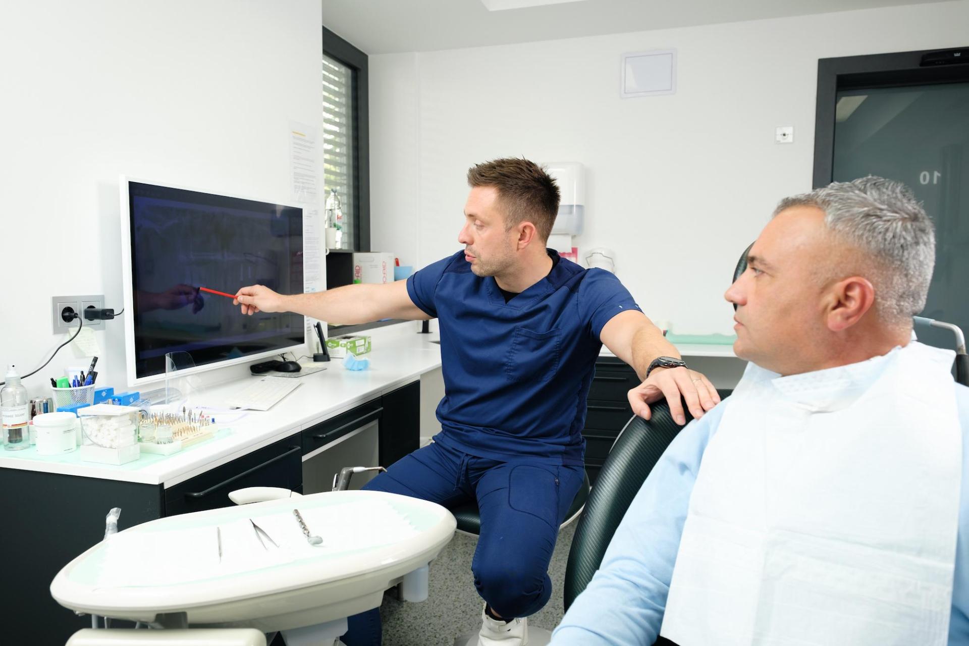 With the use of the intraoral camera, the current state of the teeth and oral cavity is displayed on the screen, which allows the doctor a better interaction with the patient.